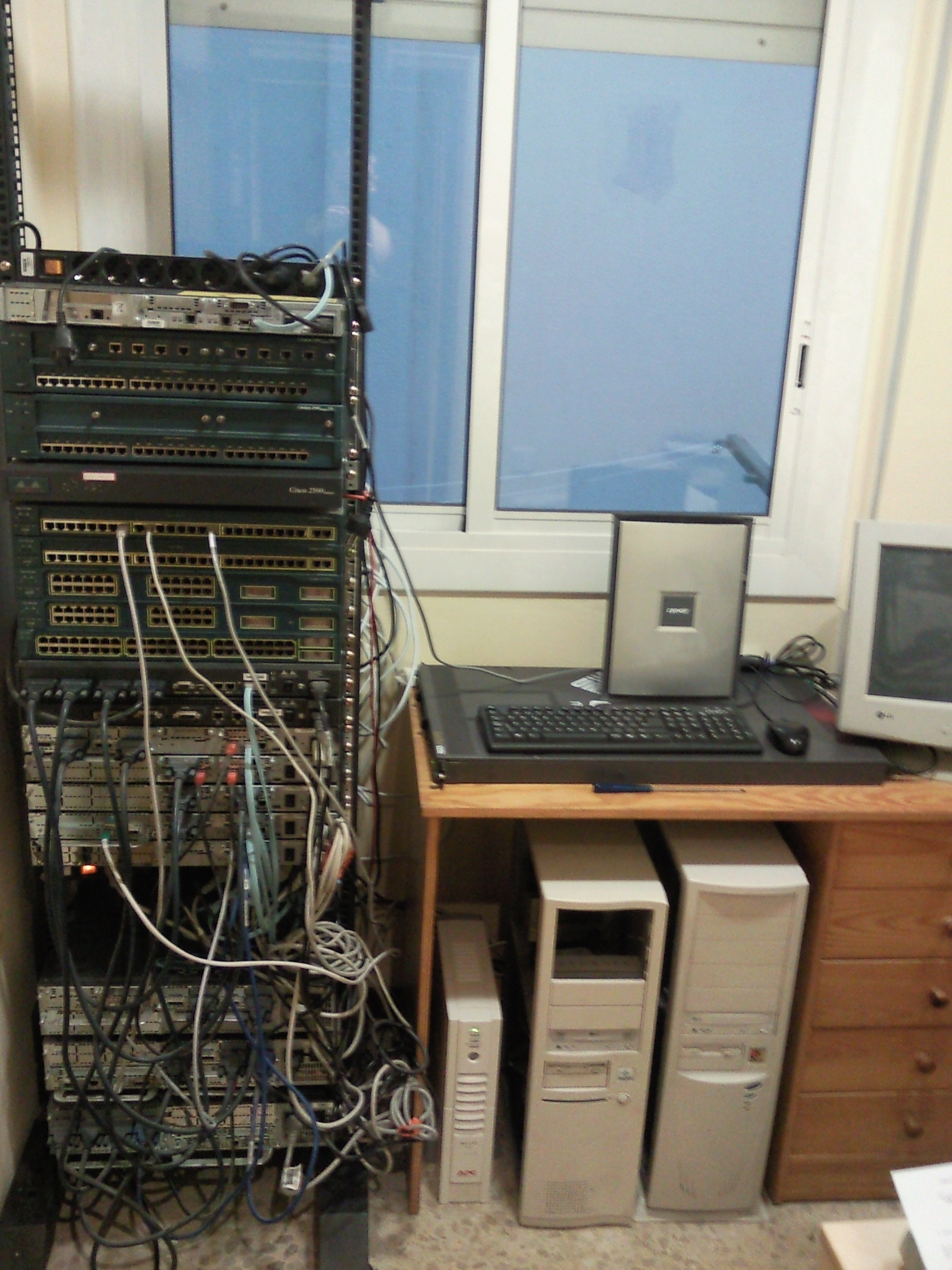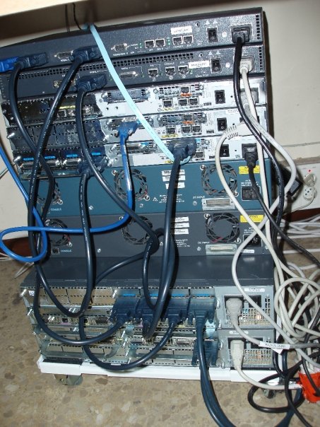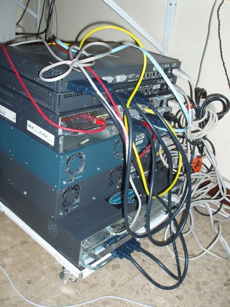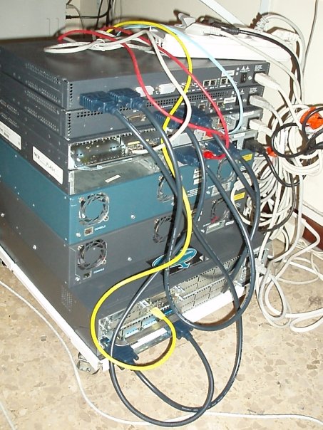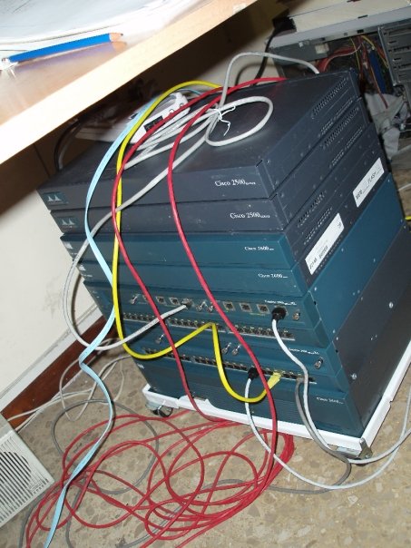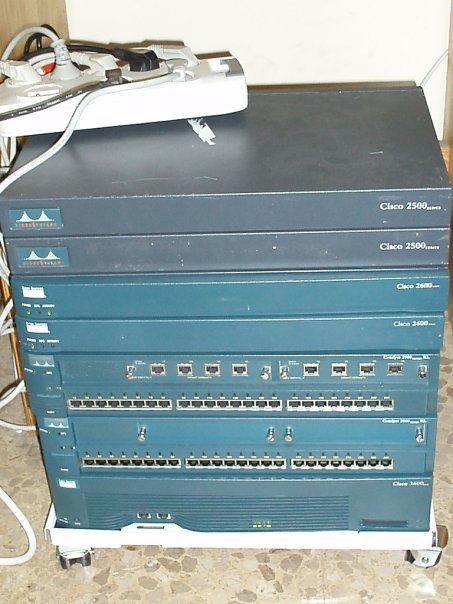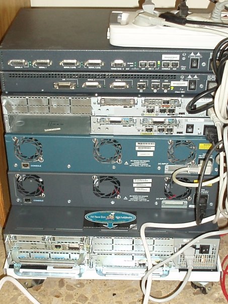Para el CCNA, en el año 2008, me compré un total de cinco enrutadores y dos conmutadores. Los modelos de los routers son: 2503, 2521, 2610, 2610xm y 3640. Y los conmutadores eran dos Cisco WS-2924-M. Todos antiguos pero funcionando sin problemas, solamente en alguna ocasión se borraba una NVRAM misteriosamente o se reiniciaba un enrutador sin saber el porqué, pero posteriormente cuando les amplié la memoria a alguno de ellos desaparecieron casi todos los problemas, aparte de esto, al no ser un entorno productivo y tener un presupuesto ajustado tampoco podía esperar mucho más.