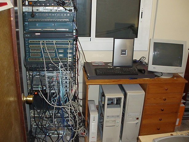 También compro un rack y coloco allí todos los aparatos, junto con los PCs antiguos para poder utilizarlos como hosts y servidores. A la vez se renovó el mobiliario de la habitación y pintado las paredes.