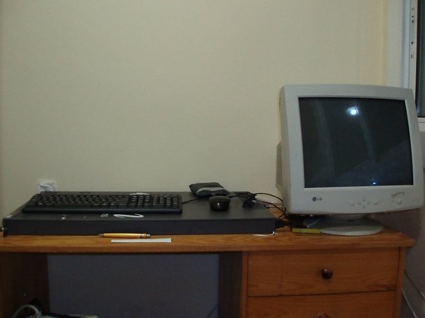 En las dos últimas fotos ya tenía los routers para el CCNA pero las coloco en esta parte porque más que nada se ven los PCs que tenía inicialmente. El desórden se debe a que es cuando se estaba reformando la habitación para cambiar la mesa y otros muebles que no se pueden ver en la imagen.